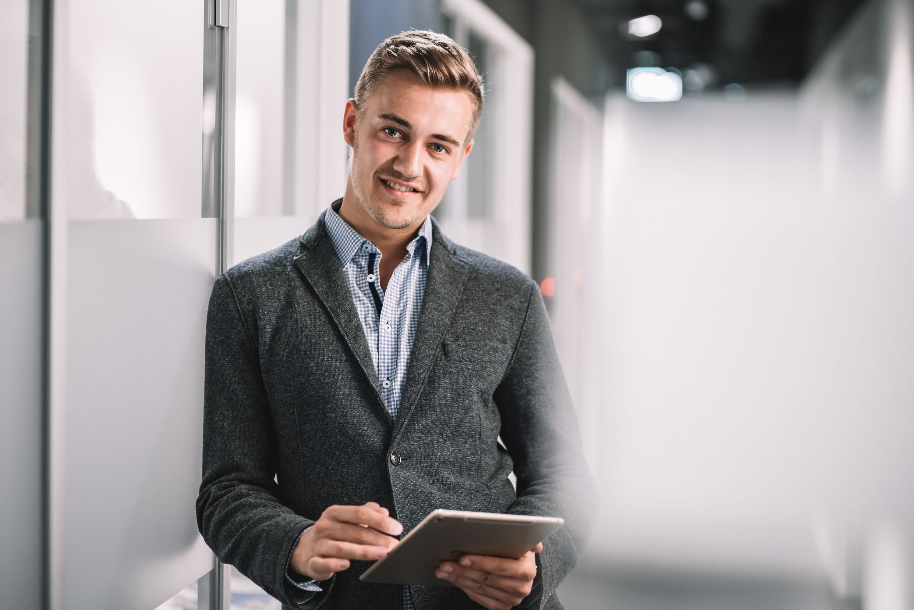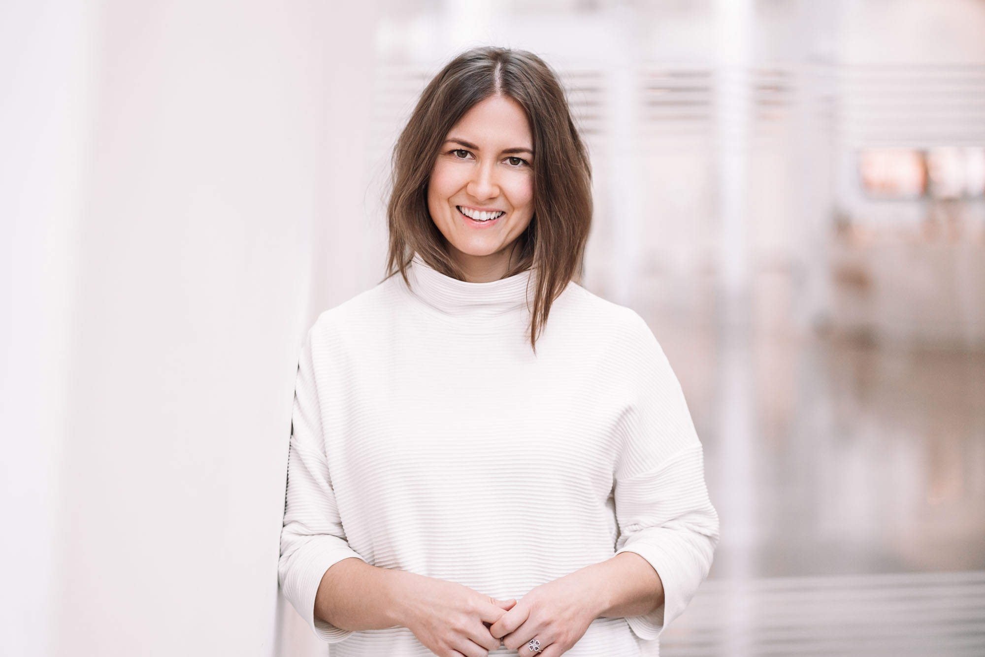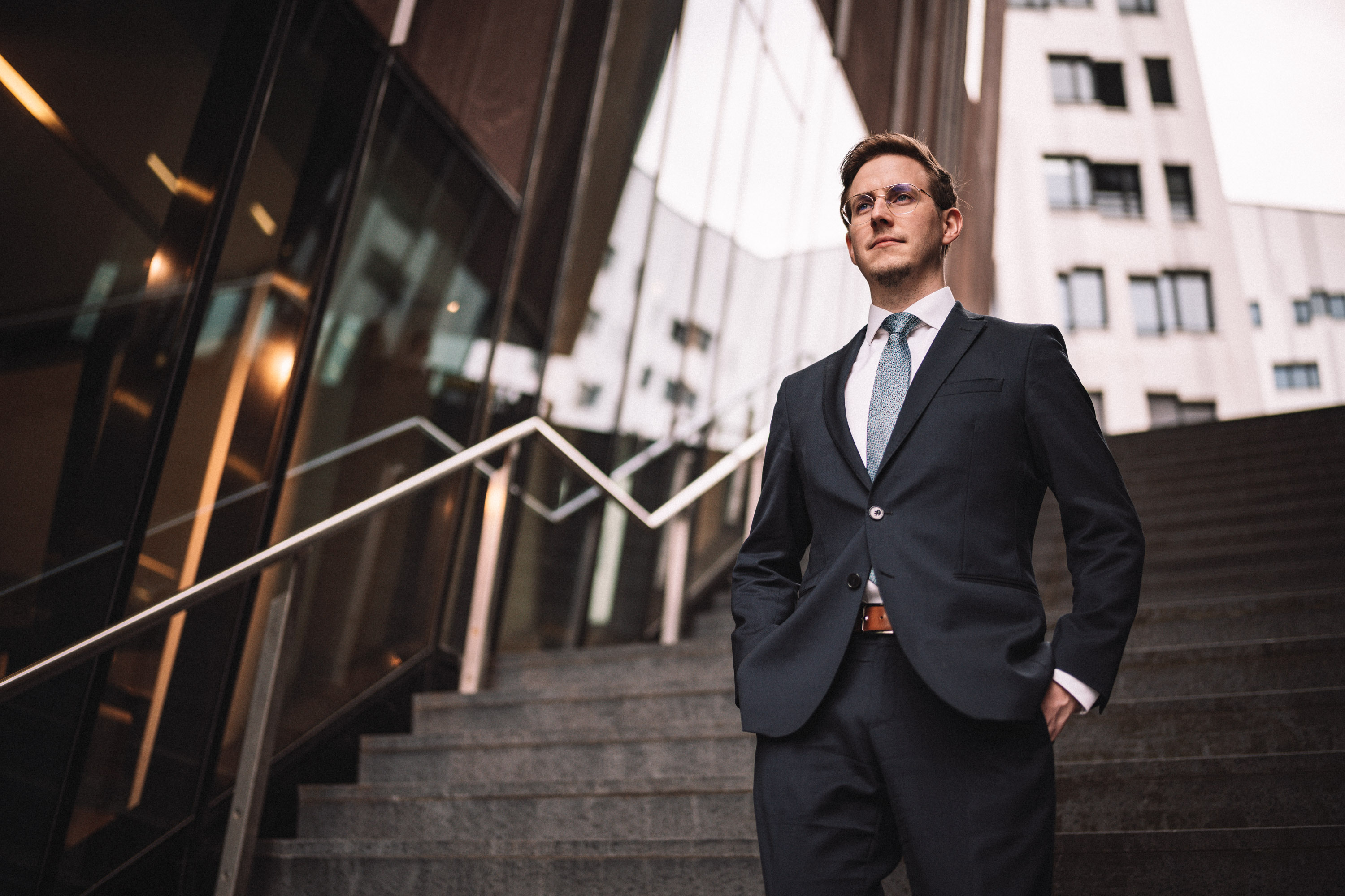 Bei der Erstellung professioneller Businessfotos steht der Mensch im Mittelpunkt - daher arbeiten wir mit einem Tethering-System, bei dem die Bilder sofort auf einem großen Bildschirm erscheinen und wir gemeinsam über Anpassungen und Optimierungen sprechen können. Ein besonderes Augenmerk liegt dabei auf der entspannten Atmosphäre: Mit viel Einfühlungsvermögen und auf Wunsch der passenden Musik im Hintergrund gelingt es auch Kamera-scheuen Menschen, sich vor dem Objektiv wohlzufühlen und ihre natürliche Ausstrahlung zu zeigen. Durch präzise, aber leicht verständliche Posing-Anweisungen entwickelt sich im Laufe des Shootings eine angenehme Routine, die Sicherheit gibt und es ermöglicht, die beste Körperhaltung und den optimalen Gesichtsausdruck für jedes Foto zu finden. Die schrittweise Heranführung an verschiedene Posen und die kontinuierliche Rückmeldung führen dazu, dass auch absolute Fotografie-Neulinge zunehmend selbstsicherer vor der Kamera werden. In der abschließenden Bildbearbeitung setzen wir mit Augenmaß die finalen Akzente, um das Beste aus jedem Foto herauszuholen und dabei einen natürlichen Look zu bewahren, der die Persönlichkeit authentisch widerspiegelt.