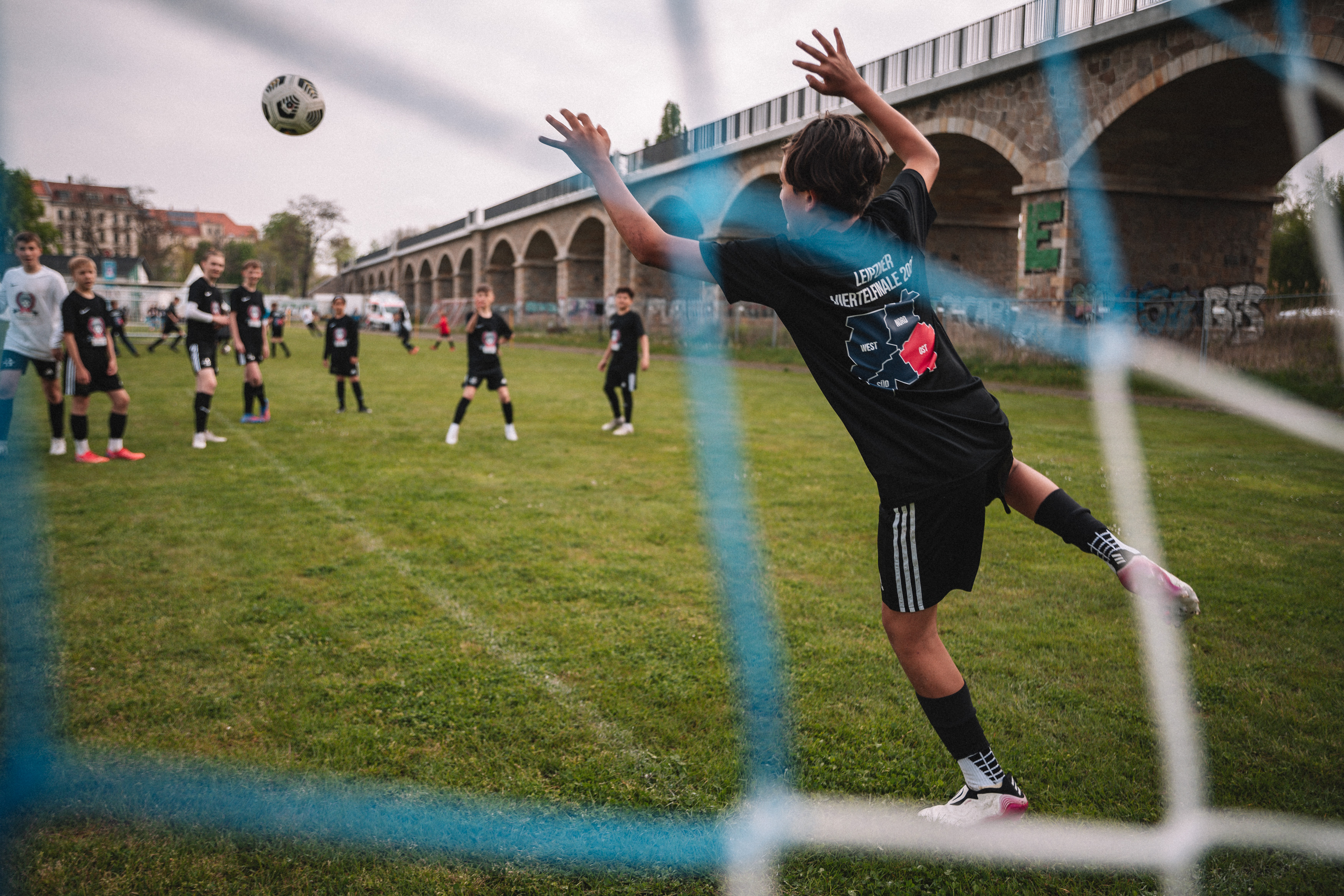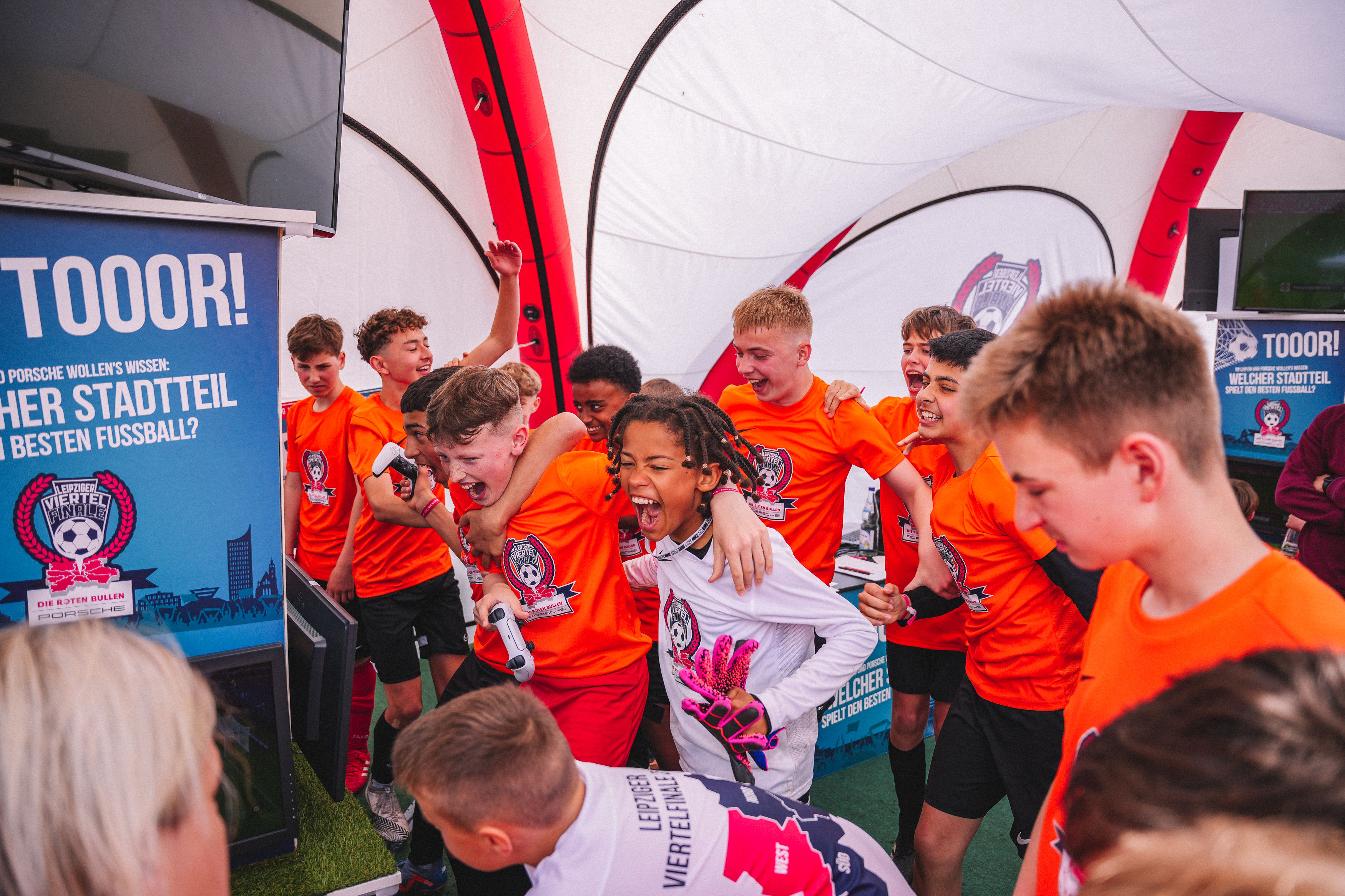 Die Komplexität des Projekts verlangte unserem Team höchste Koordination und Flexibilität ab. Die größte logistische Herausforderung lag in der simultanen Betreuung aller teilnehmenden Teams aus den verschiedenen Stadtvierteln Leipzigs, wobei kein entscheidendes Tor verpasst werden durfte. Parallel dazu dokumentierte unser Fotograf die Ereignisse, während das Videoteam zwischen verschiedenen Formatstilen jonglierte – von klassischen Reportagen über emotionale Patenbesuche bis hin zu dynamischen Best-Of Clips. Die gleichzeitige Durchführung des FIFA E-Sport-Turniers fügte eine weitere spannende Dimension hinzu. Diese Vielfalt an Formaten und Ereignissen erforderte nicht nur eine präzise Zeitplanung, sondern auch die Fähigkeit, nahtlos zwischen verschiedenen Erzählstilen zu wechseln. Unser Team meisterte diese Herausforderung durch enge Abstimmung und ein klares Verständnis für die unterschiedlichen visuellen Anforderungen jedes Formats, wodurch wir eine vielschichtige und fesselnde Dokumentation des Turniers erschaffen konnten.
